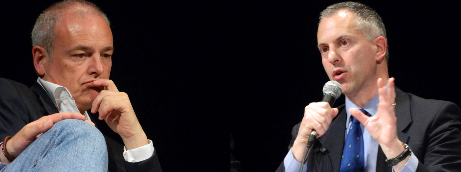 Al termine di un’intervista, Marco Doria viene condotto nello spazio dedicato alla RAI, il tecnico gli sistema l’auricolare, pare che tutto sia a posto, si parte: si avvicina un giornalista, anzi due, di RAI1 e RAI2, e comincia un duello su chi dei due dovrà intervistare il neosindaco. “Io sono in diretta!” “Ma questo è il mio spazio!” Uno smartphone cade, viene recuperato. Marco Doria assiste muto alla sfida, con l’aplomb che lo contraddistingue. Ad un certo punto arriva una giornalista di LA7: “Se non lo intervistate, me lo date, che sono in diretta!”, “me lo date” come se parlasse di un pezzo di formaggio, o di un cosciotto di agnello; gli uomini Rai non le danno ascolto, intenti alla contesa, che durerà alcuni minuti.