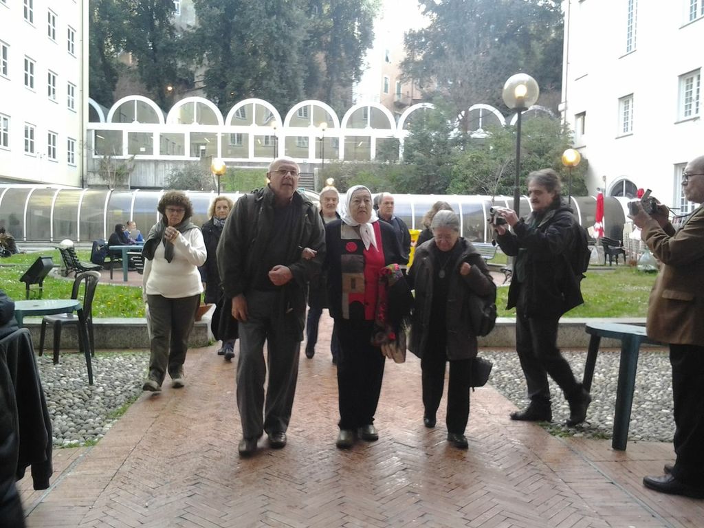 Foulard bianco, sguardo vispo, passo deciso, Hebe de Bonafini, Presidente delle Madres de Plaza de Mayo, arriva a Genova per incontrare la città. Due giornate di conferenze, letture, musica, rappresentazioni teatrali dedicate alle Madres.